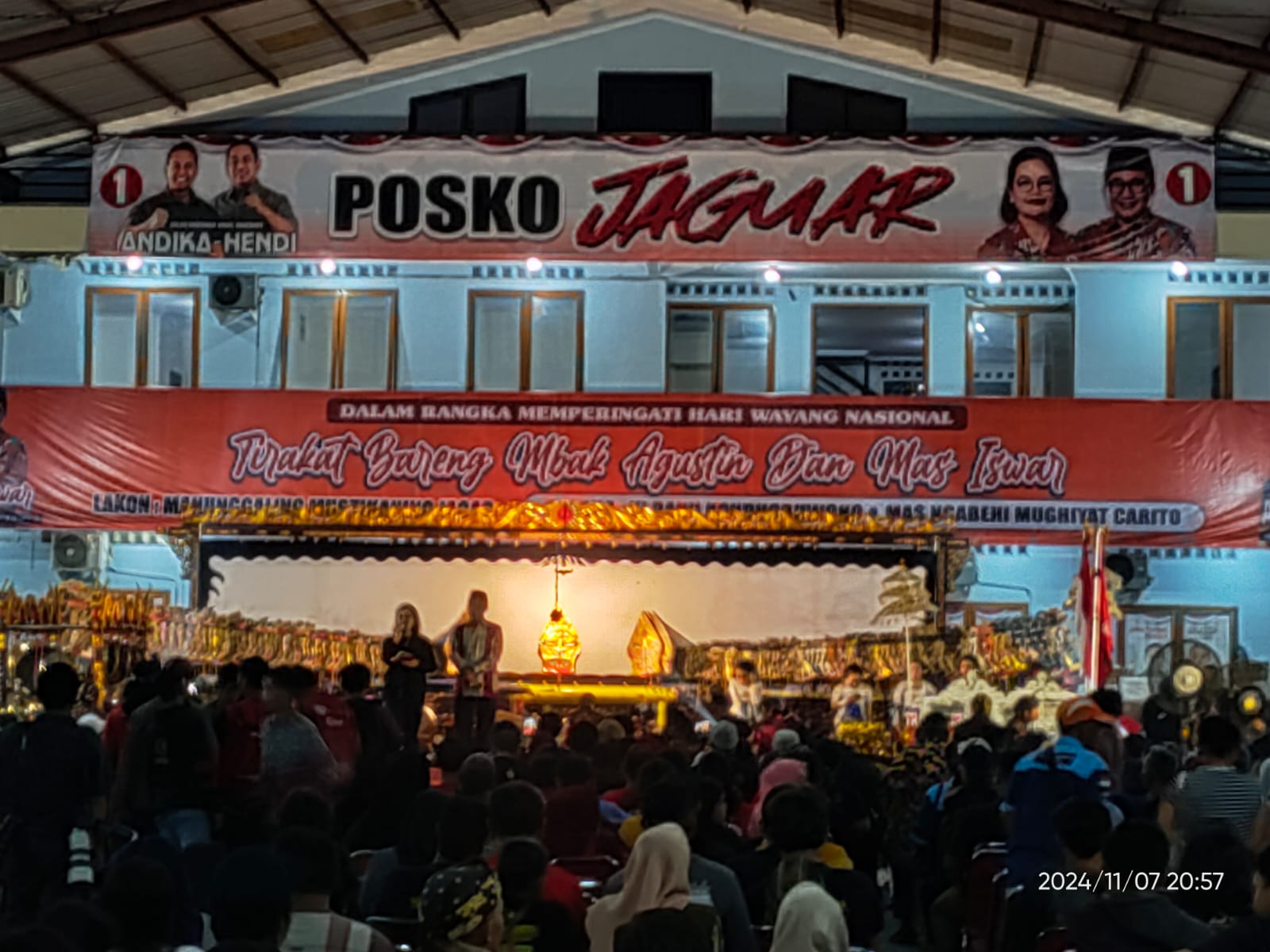 Memeringati Hari Wayang Nasional 7 November 2024, pasangan Calon Wali Kota dan Wakil Walikota Semarang Nomor Urut 1, Agustin-Iswar menggelar pagelaran wayang semalam suntuk dengan mengangkat lakon Manunggaling Mustikaning Jagad.