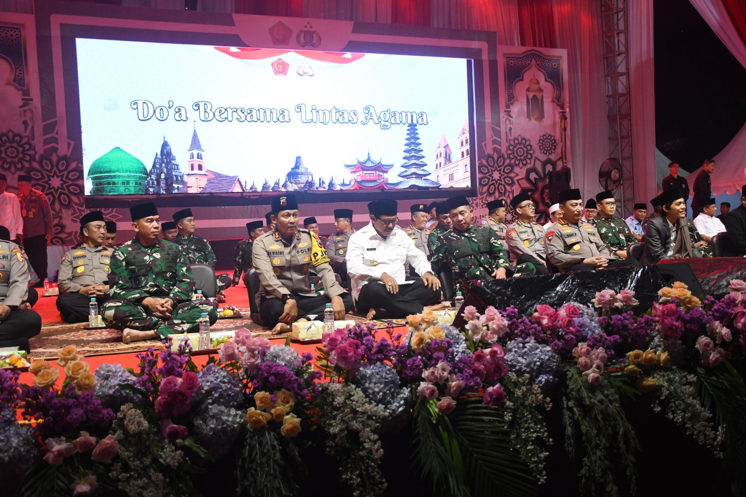METROPOS.ID II SEMARANG – Guna memanjatkan doa demi kesuksesan Pilkada 2024 yang aman dan kondusif 3 pilar kebangsaan Jawa Tengah (Jateng) gelar doa bersama lintas agama bersama masyarakat Jateng yang dihadiri langsung oleh Panglima TNI Jenderal TNI Agus Subiyanto bersama Kapolri Jenderal Pol. Listyo Sigit Prabowo dengan melibatkan beberapa tokoh agama di Lapangan Simpang Lima Semarang pada Rabu malam (20/11/2024).
