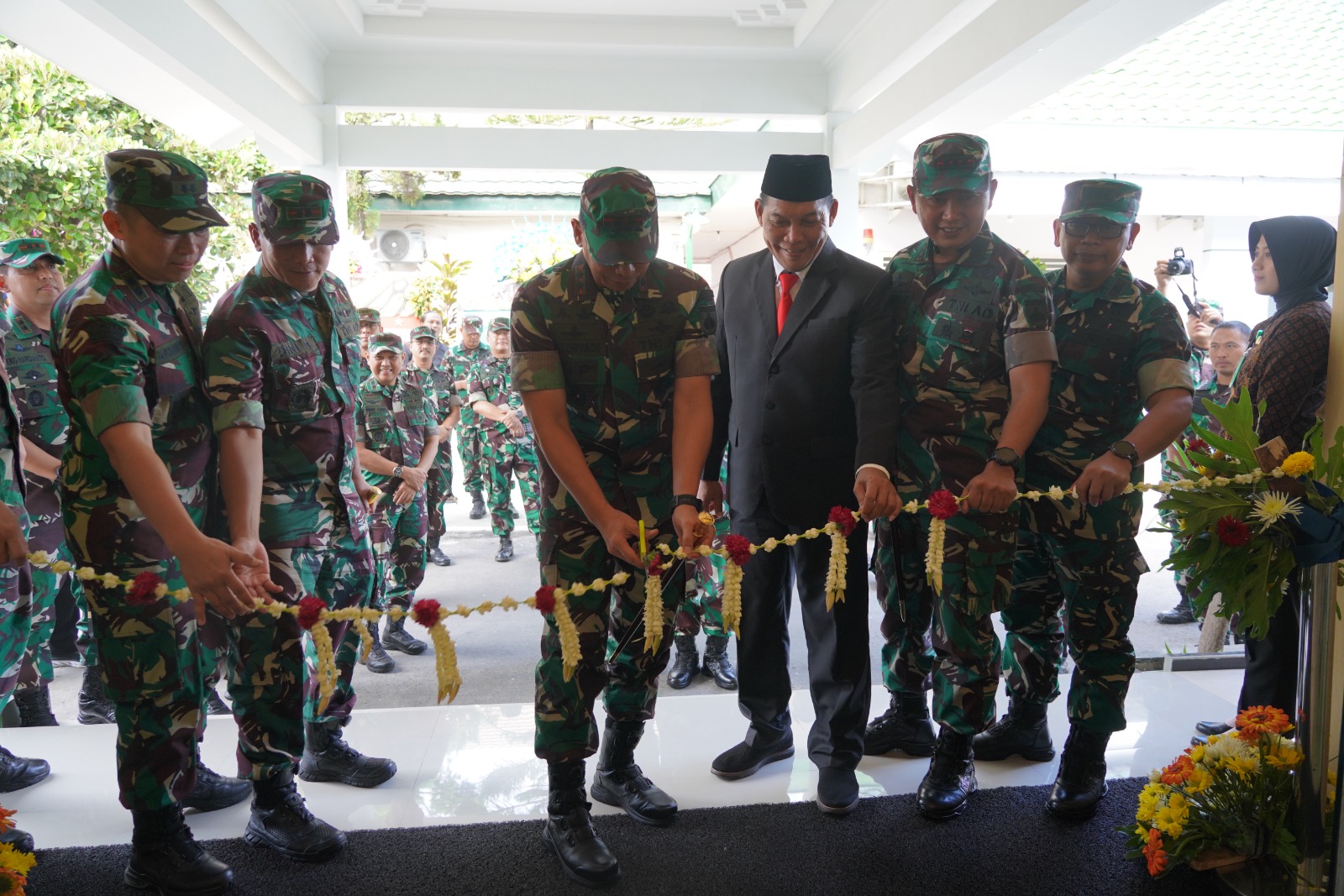 Pangdam IV/Dip, Mayjen TNI Deddy Suryadi, S.I.P., M.Si. saat memotong pita peresmian meresmikan 2 faskes. (ft pendam4/Dip)