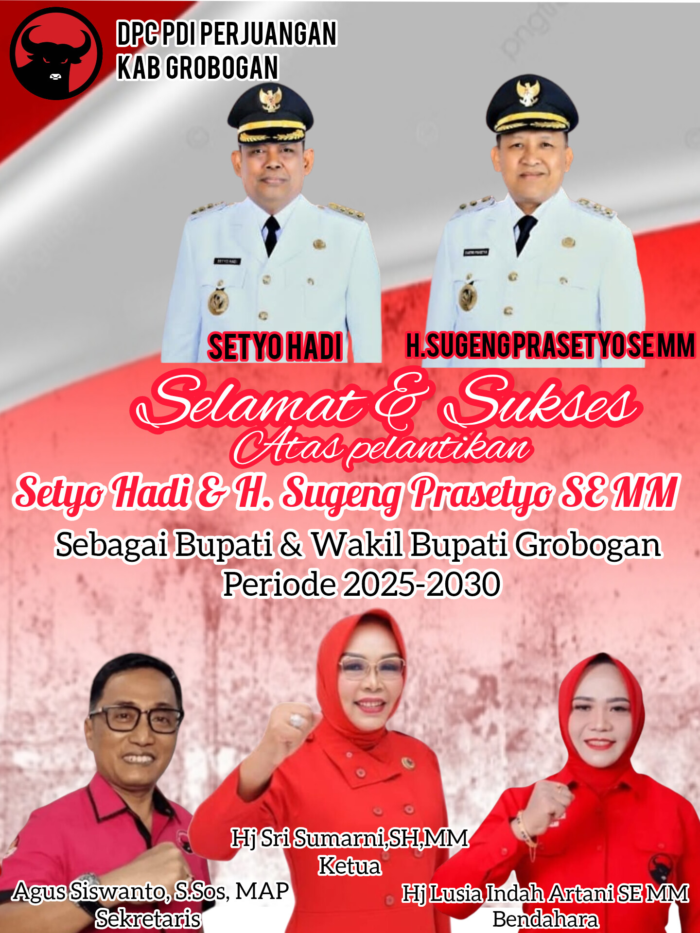 1 menit laluFebruari 19, 2025oleh Redaksi DPC PDI Perjuangan Kab. Grobogan Mengucapkan Atas Pelantikan Bupati & Wakil Bupati Grobogan Redaksi-Grobogan-0 views Jangan LewatkanDispendukcapil Kab. Grobogan Mengucapkan Atas Pelantikan Bupati & Wakil Bupati GroboganRSUD dr. R. Soedjati Soemodiarjo Purwodadi Mengucapkan Atas Pelantikan Bupati & Wakil Bupati GroboganPemkab Grobogan Mengucapkan Atas Pelantikan Bupati & Wakil Bupati GroboganSegenap Jajaran Direksi, Karyawan/Ti PT BPR BKK Purwodadi (Perseroda) mengucapkan :