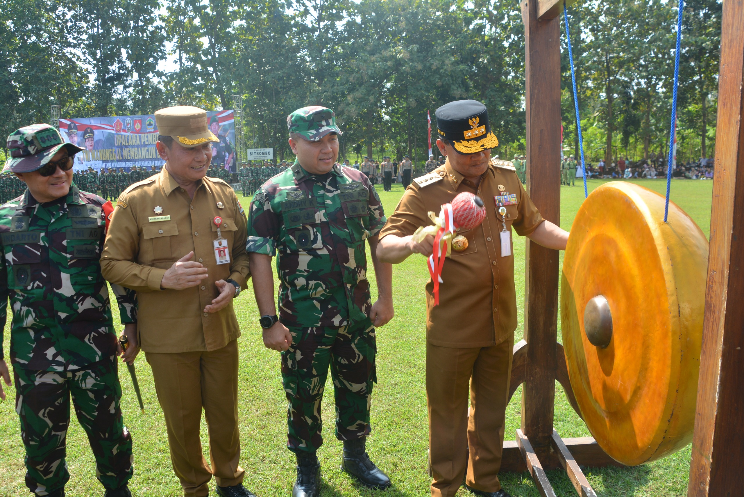 Gubernur Jateng Komjen Pol (Purn) Drs. Ahmad Luthfi, S.H., S.St.M.K saat memukul gong ditandainya program TMMD (ft pendam IV/Dip)