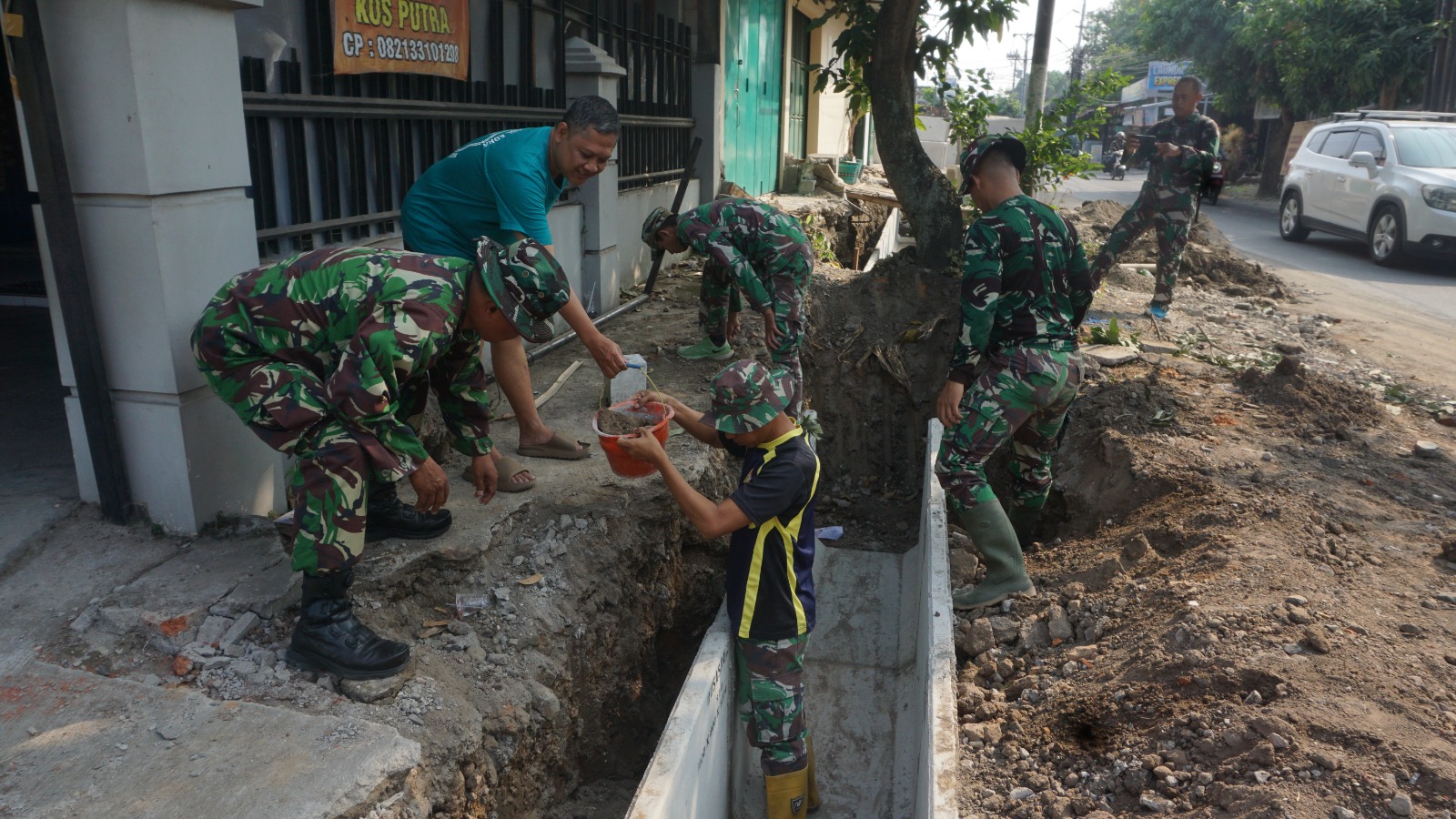 Pekerjaan saluran air tersebut dilakukan dengan menggunakan U-Ditch beton dan melibatkan personel TNI-Polri bersama warga setempat secara gotong royong. Kekompakan antar elemen menjadi kekuatan utama dalam percepatan pembangunan infrastruktur di wilayah perkotaan ini. Suasana kerja di lapangan berlangsung dengan penuh semangat, di mana sinergi TNI, Polri, dan rakyat — menjadi motor penggerak utama.