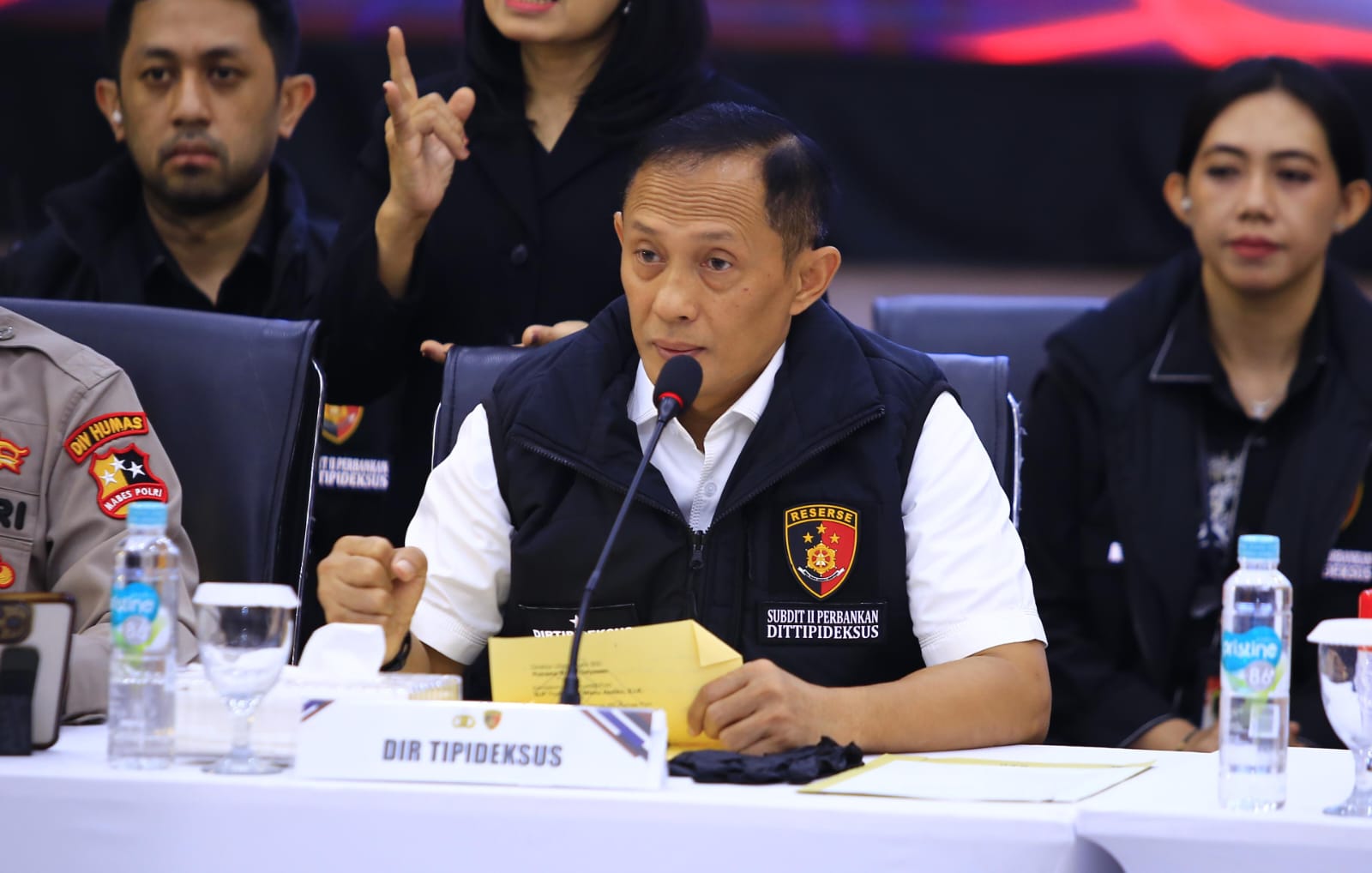 Dirtipideksus Bareskrim Polri Brigjen Helfi Assegaf saat memberikan keterangan pers (ft hms)