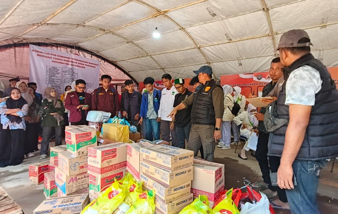 Foto : Bantuan kemanusiaan elemen mahasiswa Cipayung Plus bersama Aliansi BEM Tegal Raya bagi warga terdampak bencana tanah bergerak di Desa Padasari, Kec. Jatinegara, Kab. Tegal, Rabu (11/2/2026).(ft.hms).