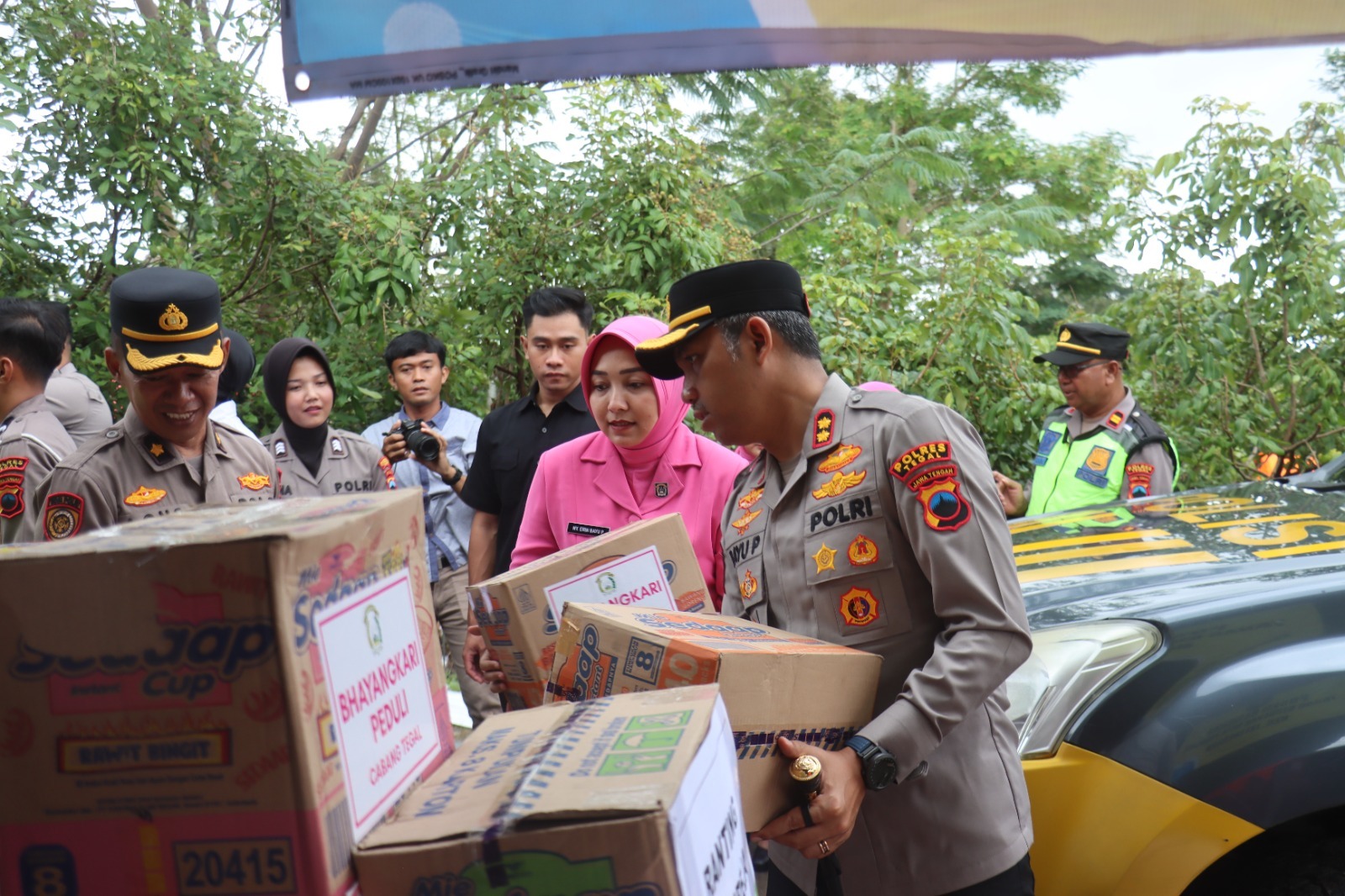 Kapolres Tegal Bersama Bhayangkari Serahkan Bantuan bagi Warga Terdampak Bencana