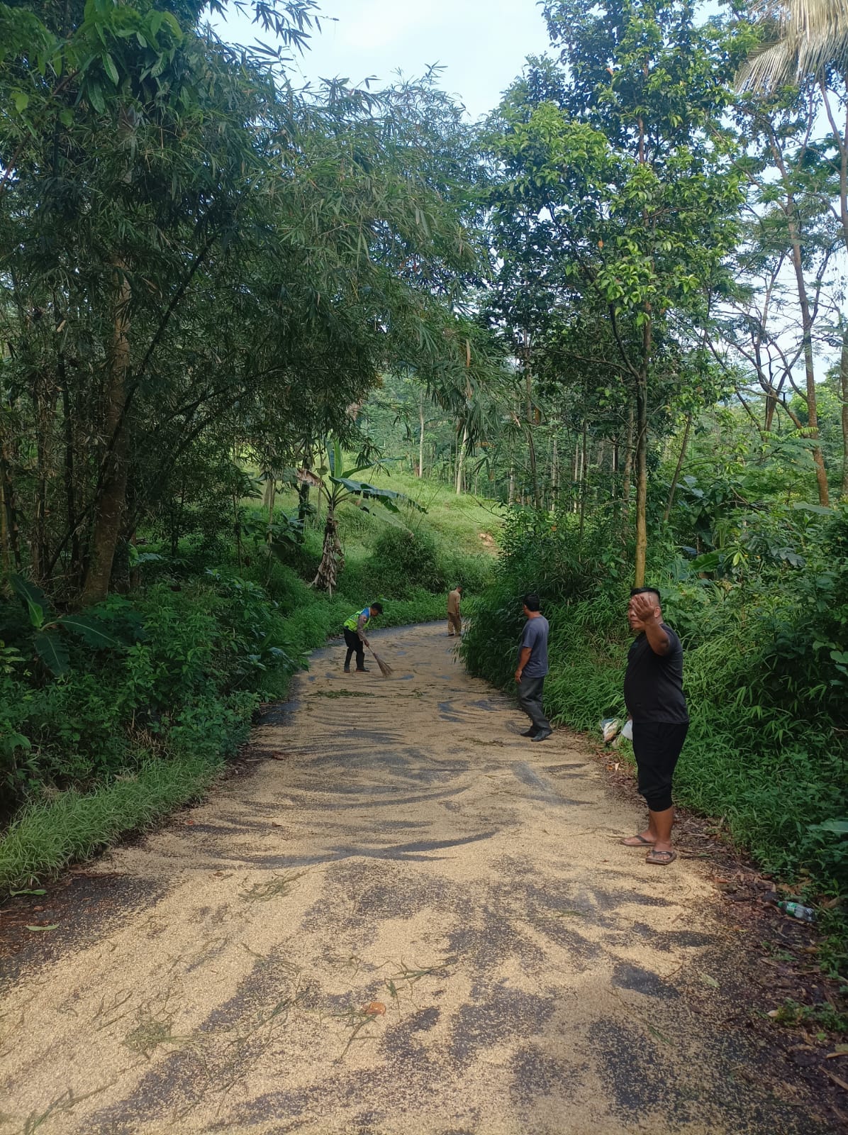 Dengan melibatkan warga setempat, dilakukan kerja bakti secara gotong royong dengan menaburkan sekam padi dan serbuk gergaji kayu di sepanjang badan jalan yang terdampak. Langkah ini terbukti efektif mengurangi tingkat kelicinan, sehingga arus lalu lintas berangsur normal dan kendaraan sudah dapat melintas kembali dengan aman.