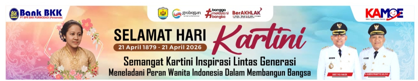 5 hari laluApril 25, 2026oleh Redaksi Bank BKK Purwodadi mengucapkan Selamat Hari Kartini Redaksi-Grobogan-2 views Jangan LewatkanDiskominfo Grobogan Jelang Media Gathering di Jawa Barat, Awak Media Diminta Jaga StaminaDinkes Grobogan Gelar Germas Di CFD, Salah Satunya Sosialisasi Penyakit CampakTerkait Suspek Campak Yang Ditemukan, Dinkes Grobogan Lakukan Langkah IniIkrar Perang Lawan Narkoba dan Handphone, Serta Perkuat Integritas, Lapas Purwodadi Gelar Apel