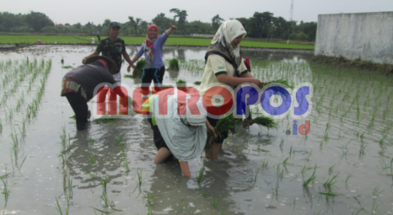 Metropos.info,Demak – Babinsa Koramil 01/Demak (Kodim 0716/Demak) Sertu Mahmudin bersama Petugas Penyuluh Lapangan (PPL) membantu petani menanam padi pada MT II di