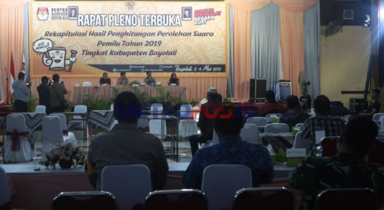 Metropos.id,Boyolali – Rekapitulasi penghitungan perolehan suara pemilu 2109 yang di gelar Gedung Sasono Mulyo Wiguno, Jalan Solo – Semarang Km 24, Kelurahan/Kecamatan