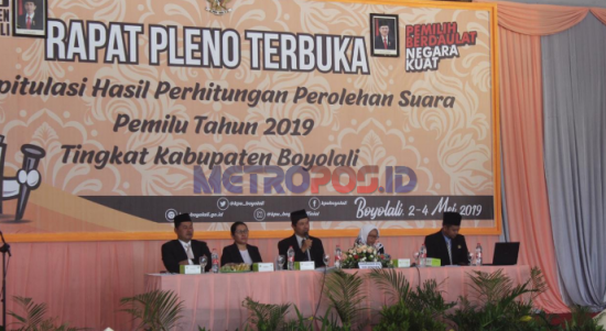 Metropos.id,Boyolali – Komisi Pemilihan Umum (KPU) Boyolali, menggelar rapat pleno terbuka rekapitulasi hasil penghitungan perolehan suara pemilu 2019.Rapat Pleno Terbuka tersebut digelar